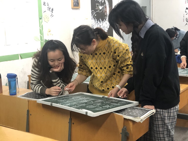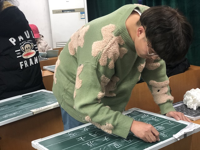 本网讯(文/于硕 图/于硕)为进一步强化师范生黑板字书写能力,增强员工的基础素质,12月14日晚,18级教育学讲字活动在田楼8401教室顺利开展。练字工作组成员吴君瑜担任本次讲字活动的主讲人,18级袁慧,19级徐馨宇、张羽西负责现场指导工作。