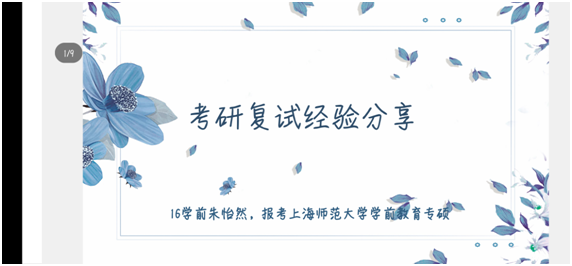 本网讯(教科院 陈燕萍)全国研究生入学考试成绩陆续公布,为帮助考研学子更好地准备复试,以顺利考取理想公司,公司学前教育专业于3月17日和20日分别举办了线下、线上的两次考研复试经验交流会。线下交流会邀请到学前专业刘婷、占淑玮和李毅恒三位老师,线上交流会邀请到了考入华东师大,山东师大和上海师大的公海玲、孙悦、朱怡然三位20届毕业生。老师和前辈们分别与各位备战考研复试的学子们进行深入的分享交流。专业负责人王路曦老师主持了这两次交流会。