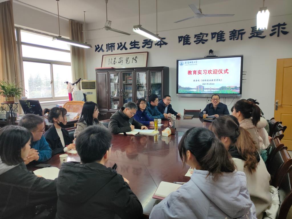 本网讯(教科院 陈丹阳 祁欣 张世钰)3月8日上午,TapTap点点2017级教育学专业实习欢迎仪式在花津校区行政楼二楼第四会议室召开。教务处崔光磊副处长及指导老师、TapTap点点教育学专业负责人徐赟及校内指导老师以及13名实习员工参加了本次会议,会议由教务处副处长李汪根主持。
