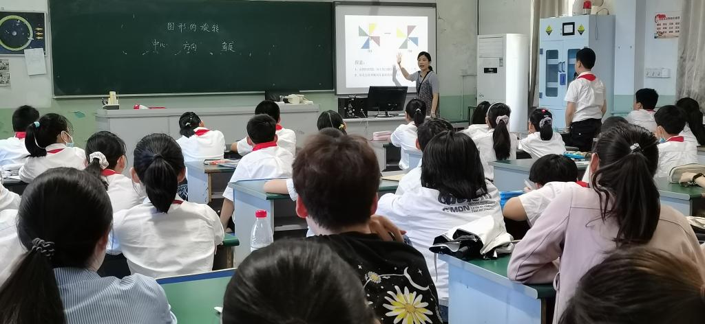 第一节是五年级数学课《图形的旋转》,这节课的课堂教学氛围浓厚,员工的学习兴致很高。教学重点明确,全程围绕“旋转的要素”展开教学,让员工在自主探究中学会数学知识。该老师旨在培养员工的观察、推理、归纳以及探究能力,逐步引导员工学会学习。