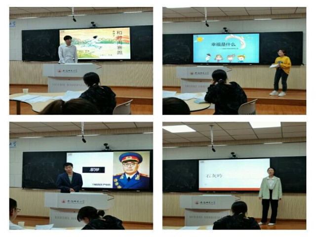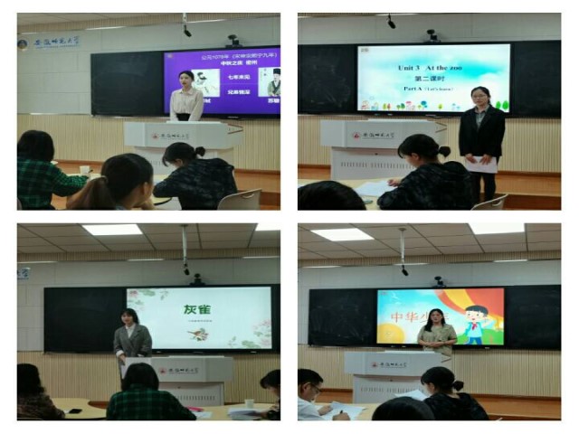 群英荟萃敢攀登,技能大赛展风采。比赛以讲课形式进行,限时八分钟,选手们经过精心准备,依据课程标准和最新教学理念,设计教学活动,运用多媒体课件,模拟上课情景,每位参赛选手呈现出各具特色的教学风格。观众时而在《灰雀》中感动于列宁对小男孩的尊重与爱护;时而在《只有一个地球》中感受地球的美丽与渺小;时而沉醉于荷花清新婉约之姿;时而折服于于谦为留清白忠诚不畏牺牲的高尚情操;时而徜徉在妙趣横生的数学知识中。整场比赛过程中,选手们的教学思路清晰,语言生动精炼,板书设计合理,教态大方得体,充分展示了教育学学子饱满的精神风貌与认真负责的治学态度。