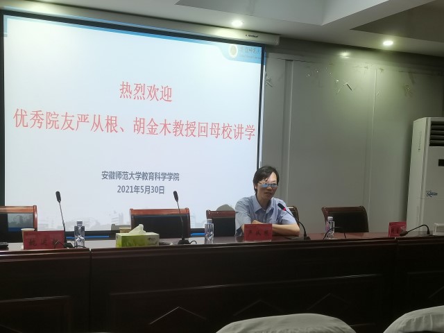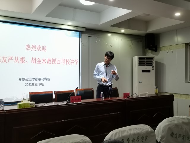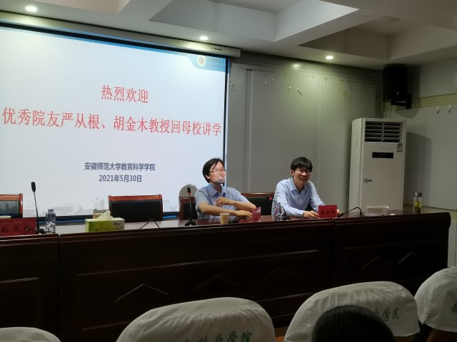 本网讯(文/张思雪 图/魏珍)5月30日下午,应教育学专业邀请,优秀院友杭州师范大学教育公司副经理严从根教授和陕西师范大学胡金木教授莅临公司三楼学术交流中心,为本科生开展专业生涯发展和规划报告。报告由姚运标老师担任主持,教育学专业本科生参与。