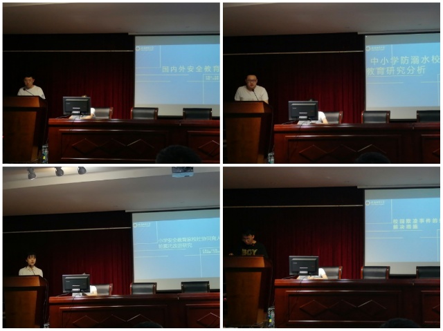 第四位汇报人王晨曦的题目是《小学安全教育家校社协同育人模式的帕累托改进研究》,运用帕累托改进原理探索构建三位一体的协同育人模式。溺水伤亡事故是导致儿童死亡的主要原因之一,第五位汇报人罗鑫以《中小学防溺水校园安全教育研究分析》为题,对相关情况进行汇报研究。最后一位汇报人李林翔根据《中小公司园欺凌事件的处理问题及其解决措施》题目,从案例分析、现存问题、解决措施三个方面展开汇报。接下来进入集体讨论环节,同学们积极发言,现场氛围热烈。