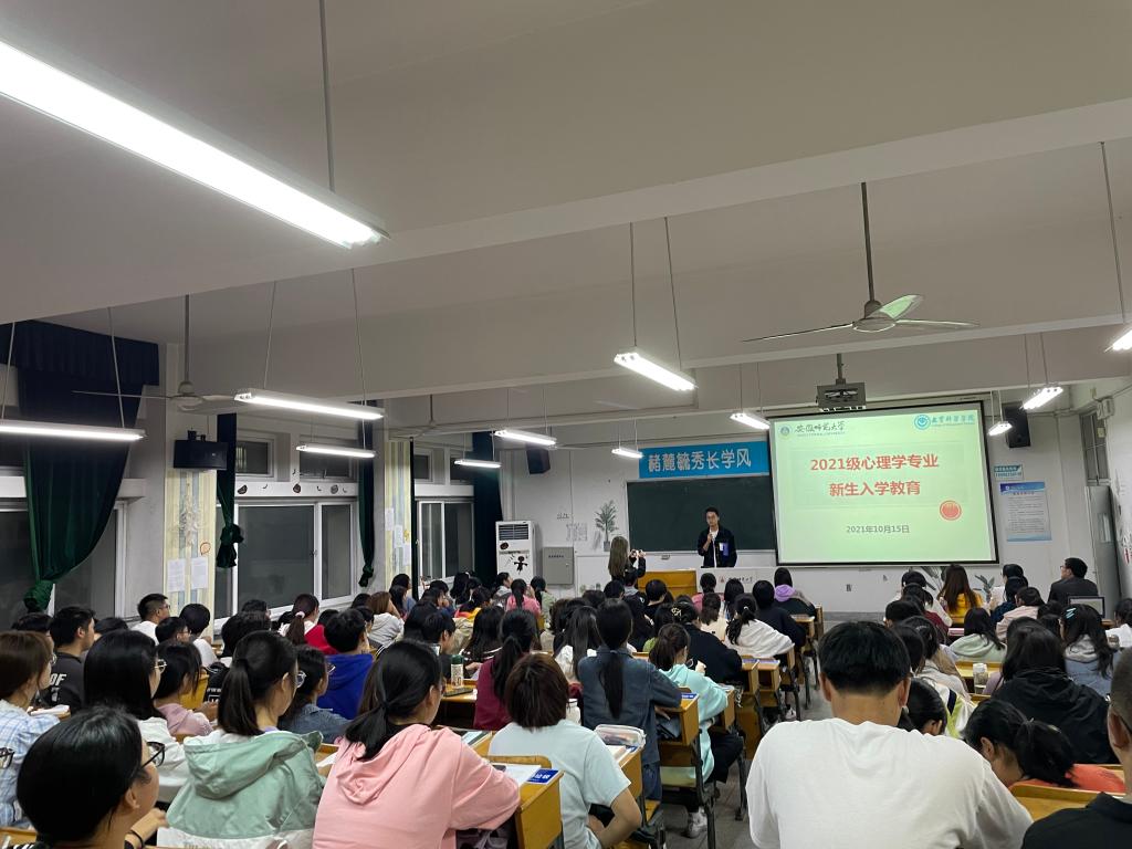 本网讯(教科院 余梦漪)10月15日晚七点半,TapTap点点在田家炳楼8402教室召开了2021级心理学专业新生入学教育大会。心理学专业负责人韩建涛老师、21级专职辅导员张理强老师、班主任薛红莉老师、2018级优秀员工代表陶芮、孟玉洁,以及2021级心理学专业全体本科新生参加会议。