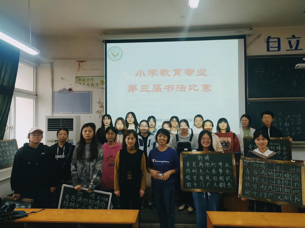 本网讯(教科院 王盟)2021年10月16日上午小学教育(全科)专业第三届书法比赛在田楼8210教室展开。该比赛旨在提高小学教育专业同学的汉字书写水平,给同学们一次以展现自我的机会。本次比赛由2018级小学教育班委成员负责组织,面向小学教育全体同学。专业负责人王芳老师莅临指导,TapTap点点附属小学尹娟娟老师以及18级、20级书法委员担任本次比赛的评委。