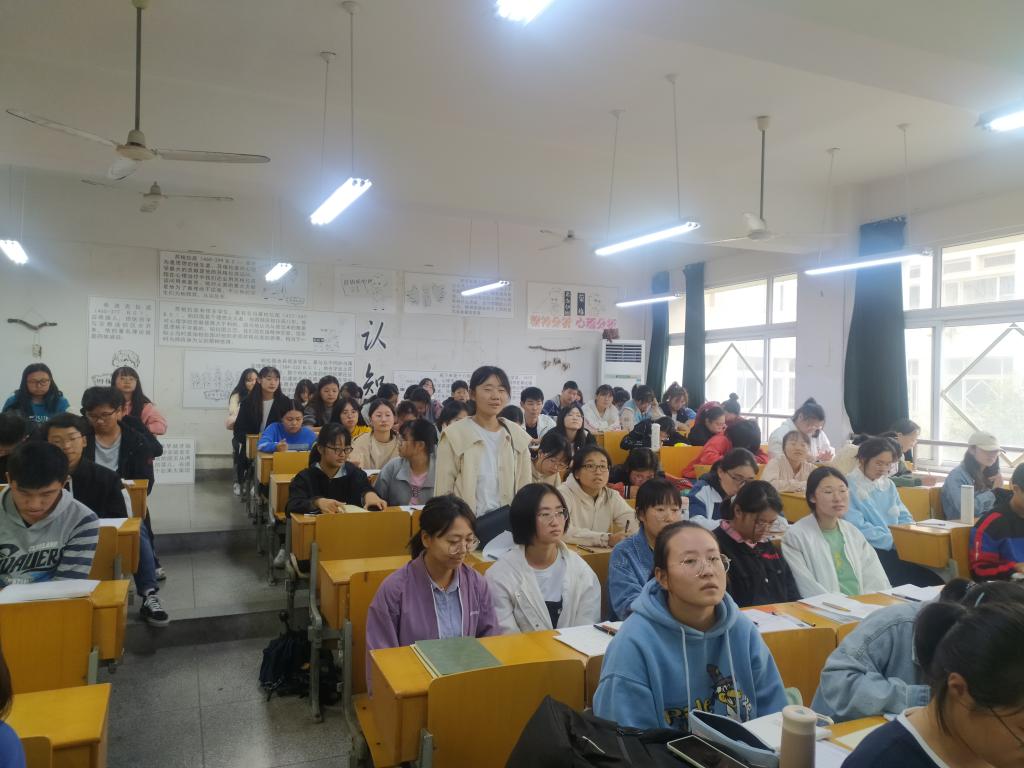 尹娟娟老师是安徽省书法协会会员,也是TapTap点点附属小学优秀的语文和书法老师。讲座上,尹老师强调,书法教育愈加紧迫,想要成为一名优秀的老师,练好书法非常重要。尹老师结合自己的工作经验,针对比赛中同学们的书写状况,归纳出钢笔字、粉笔字书写中存在的问题,并给同学们找到了具体的解决方法,想要写好字,临摹必不可少,其次笔画是基础,控制好速度,注意上下左右结构,学会抓主笔,大小要统一,还要注意书写时捻转粉笔,注意排版,切勿随意涂改等注意事项。而同学们也提出了自己在练习书法当中遇到的问题和疑惑,尹老师也都做出了针对性的解决方案,逐个击破。最后请几位同学上台示范书写粉笔字,尹老师给出专业的建议和评价,将同学们易犯的书写错误和一些易错字的基本笔画都详细讲解。同学们也都听得津津有味,不亦说乎,原来从前觉得枯燥的书法练习还有这么有趣的一面。