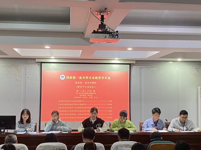 本网讯(文/张思雪 图/谢雅雯)10月24日晚,国家级一流本科专业建设点教育学专业第一百二十五次专业论坛在公司楼学术交流中心顺利举行。莅临本次专业论坛的有小组指导教师路宝利以及嘉宾教师金维才、江珊、肖龙和徐赟。19级、20级教育学专业全体本科生及21级部分教育学类专业本科生到场参加。20级教育学马祎曼担任主持人。