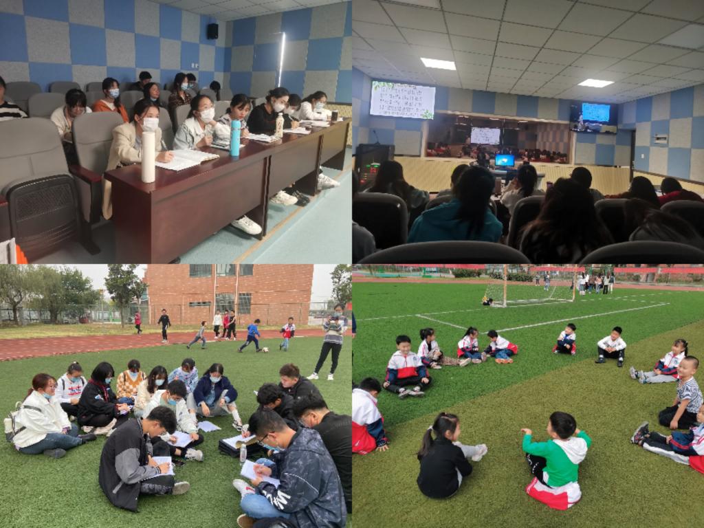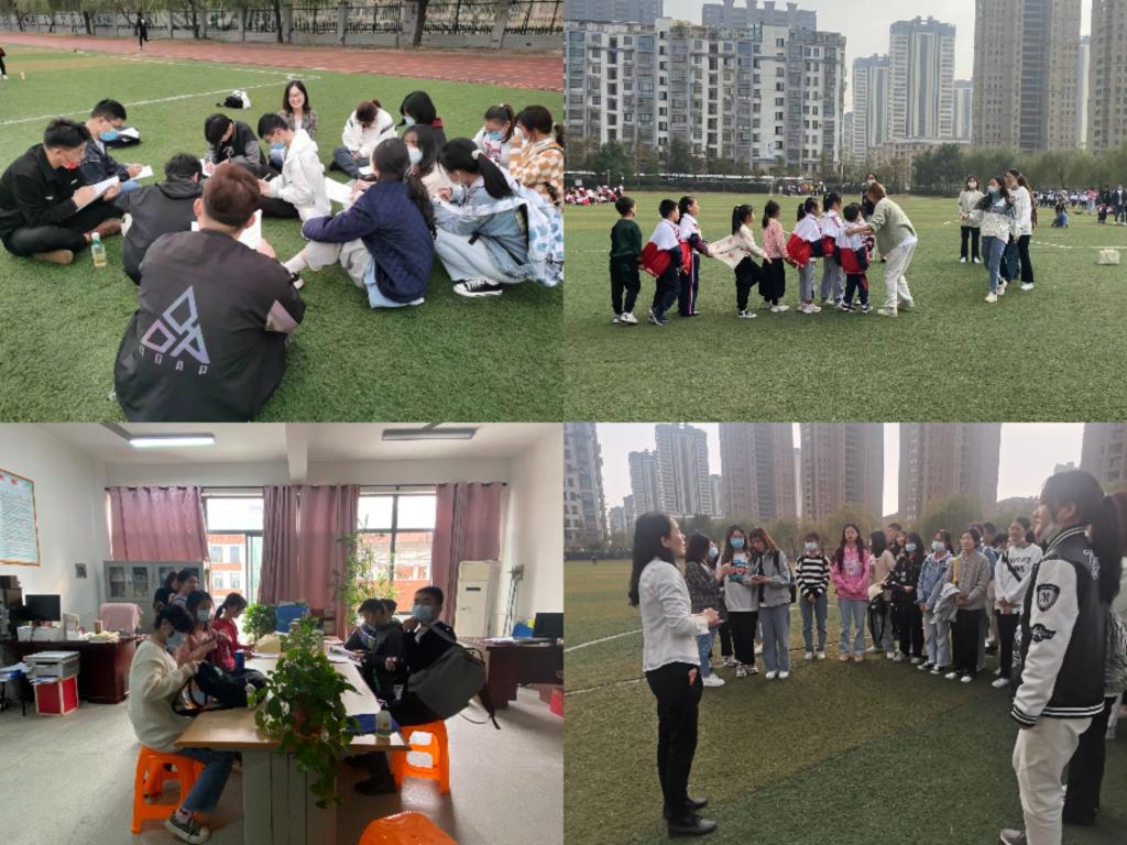 下午,在教学交流环节,同学们以小组为单位到不同的班级中去观摩音乐、美术、体育三科的课堂教学,丰富同学们在音乐、美术、体育等学科方面的实践体验,开阔了同学们对教学内容组织、教学方法选择等方面的视野。最后,全班同学分成两组,一组去各年级办公室与一线教师进行面对面、一对一交流,另一组同学则在操场上通过组织各种游戏活动为一二年级小员工进行心理辅导。