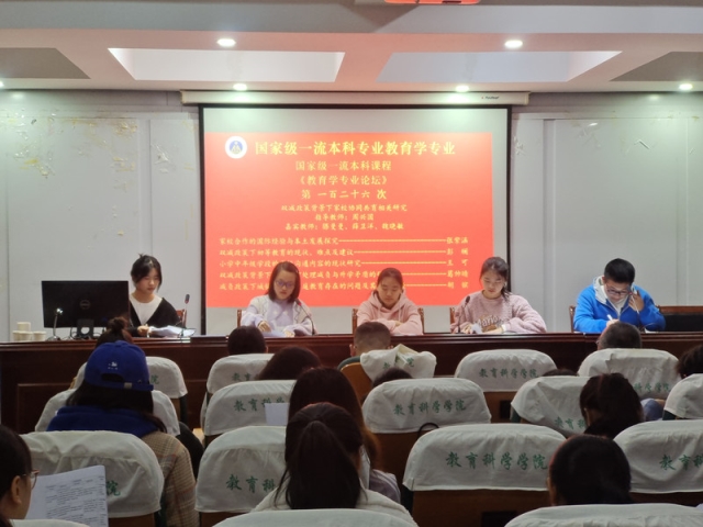 本网讯(文/谢雅雯 图/张思雪)11月7日晚,国家级一流本科专业建设点教育学专业第一百二十六次专业论坛在田楼B座三楼学术交流中心顺利举行。莅临本次专业论坛的有小组指导教师周兴国以及嘉宾教师滕曼曼、薛卫洋和魏晓敏。19级、20级教育学专业全体本科生及21级部分教育学类专业本科生到场参加,20级教育学王悦晓担任主持人。