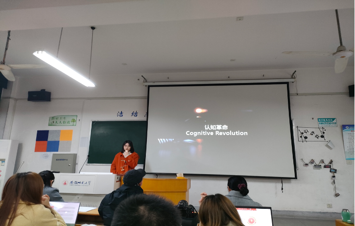 其次,各小组代表成员共计18名依次上台进行读书汇报。读书汇报的主题多种多样,同学们有的就教育的第四次革命进行了汇报有的同学就如何开发大脑进行了汇报,有的同学就《人类简史》的心得感悟进行了汇报。各小组代表成员积极地向同学们分享自己在读书中的感悟以及领悟,激起了20级教育技术学专业1班全体同学的学习兴趣、读书兴趣。整场汇报在老师和同学们的共同努力下高效有序进行。