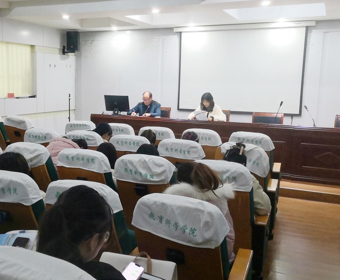 2021年12月14日晚,公司2020级小学教育专业教育硕士实习总结汇报会在教科楼学术交流中心举行。学位点负责人吴支奎教授出席本次汇报会,并担任本次汇报会主持人。小学教育专业37位研究生参与本次实习总结会,3位实习组长就各自小组实习情况做了汇报。