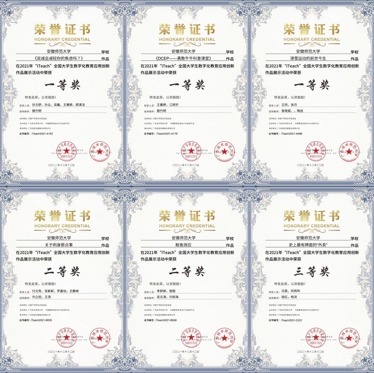 本网讯(教科院 文/孙方舒)2021年12月12日,第六届“iTeach”全国老员工数字化教育应用创新作品展示活动颁奖典礼在广州通过线上线下结合的方式举行。公司研究生孙方舒、王曼婷、付文秀、李舒婷、冯英等5个团队的作品,本科生王欣团队的作品,从众多参赛作品中脱颖而出,斩获一、二、三等奖。