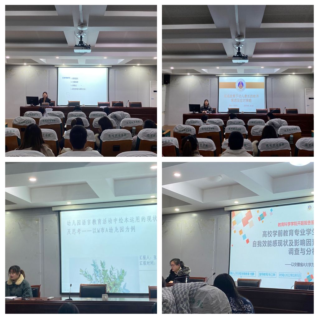 本网讯(教科院 刘晓琴)2022年1月5日上午9点,学前教育专业于田楼b座学术会议交流中心以及308和408会议室开展了本科生论文开题答辩工作。答辩组分成三组,分别由赵学菊老师、吴玲老师和王成刚老师等9名成员构成, 学前教育专业2018级全体本科生参加。