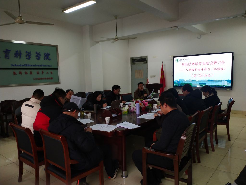 本网讯(教科院 张婷婷 杨滨)2022年1月8日下午,公司教育技术学专业建设研讨会(第三次会议)顺利召开。辛治洋副经理,张克松、吴文涛、张新明、王清、许之民、袁晓斌、陶佳、刘和海、丁晓云、席鹏、袁同庆、高宇、肖文、张帅、叶方舟、白倩等老师参加了会议。会议由专业负责人杨滨教授主持,此次会议共分四项议程,历时三个小时,专题研讨了教育技术学专业人才培养方案修订初稿。