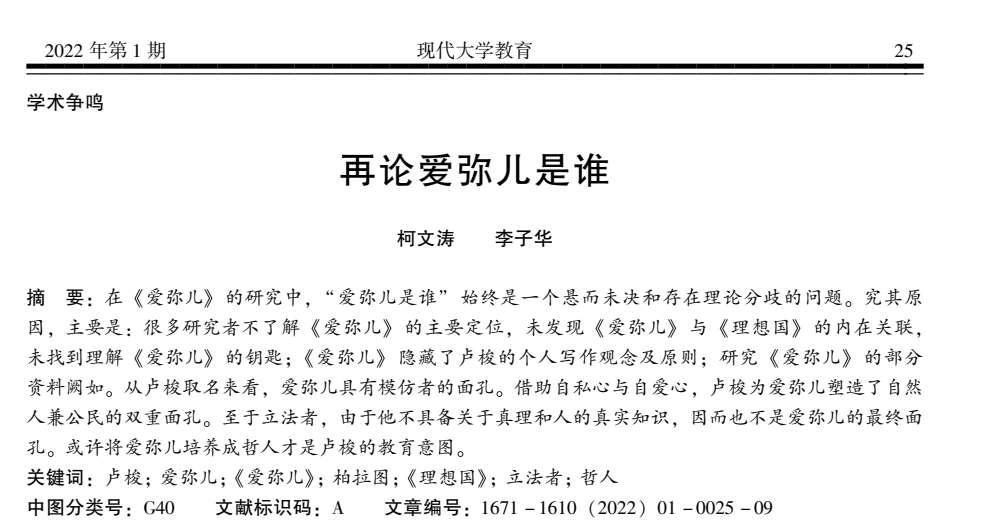 【教师科研】柯文涛等:再论爱弥儿是谁