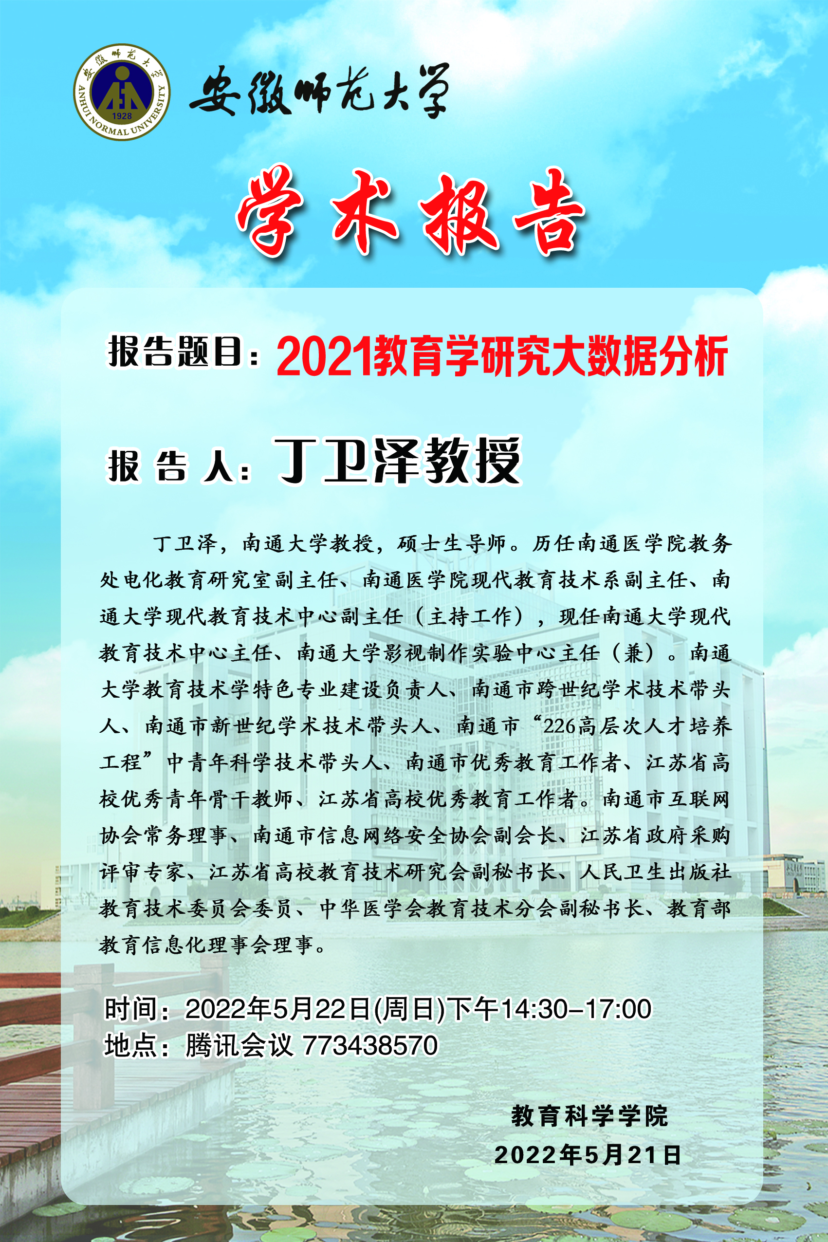 【学术预告】丁卫泽:2021教育学研究大数据分析
