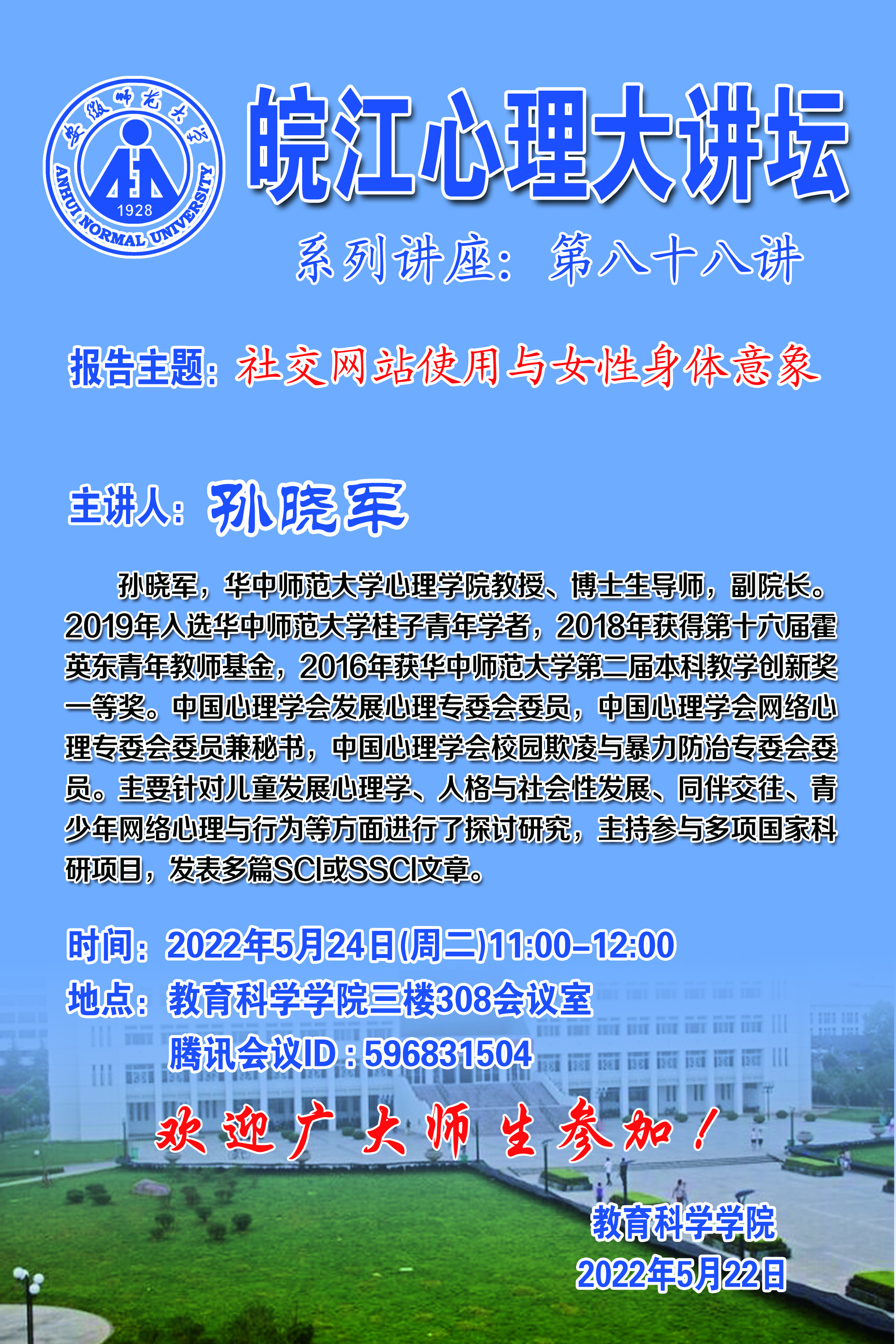 【学术预告】皖江心理大讲坛第八十八讲:社交网站使用与女性身体意象