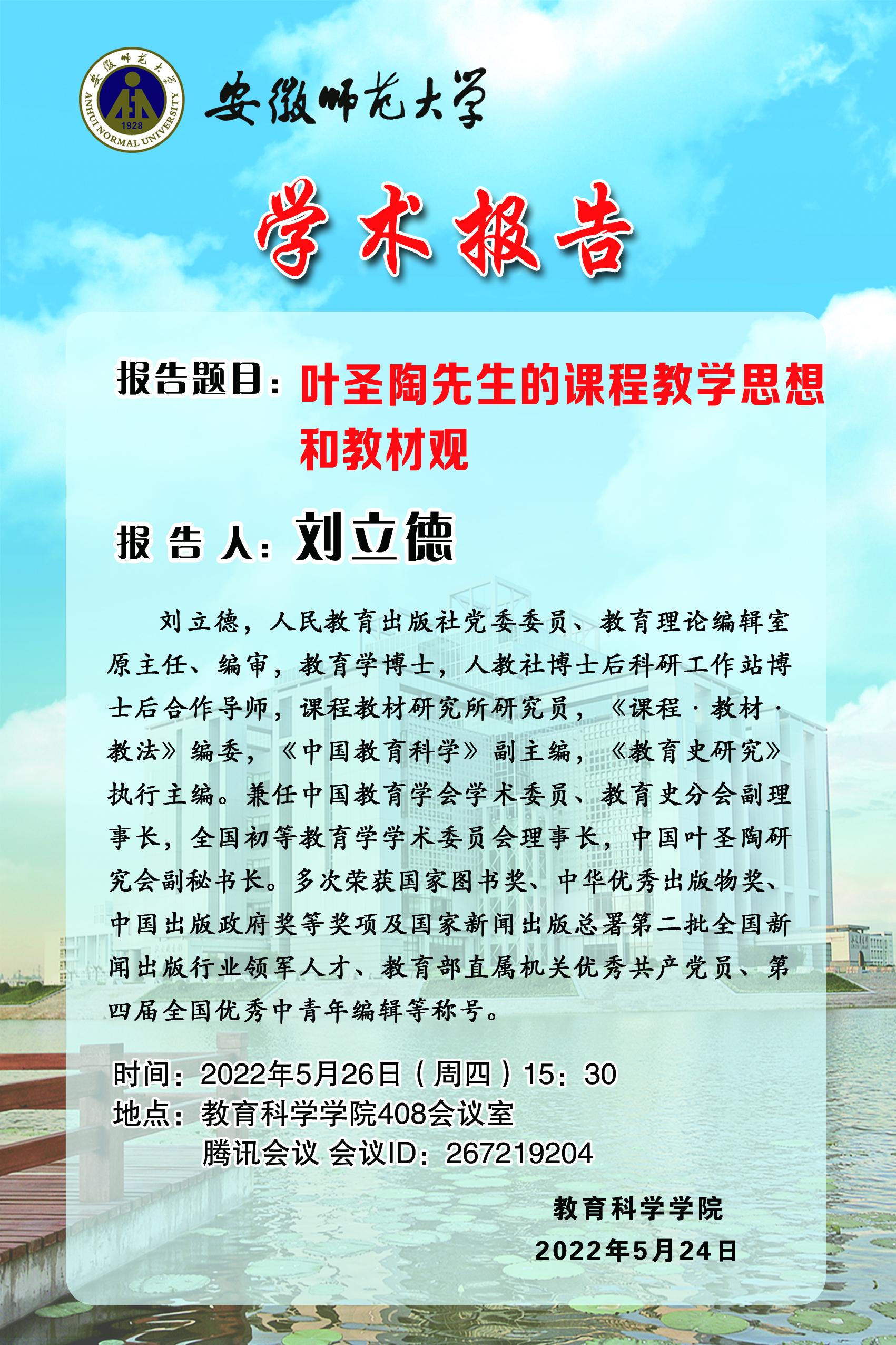 【学术预告】刘立德:叶圣陶先生的课程教学思想和教材观