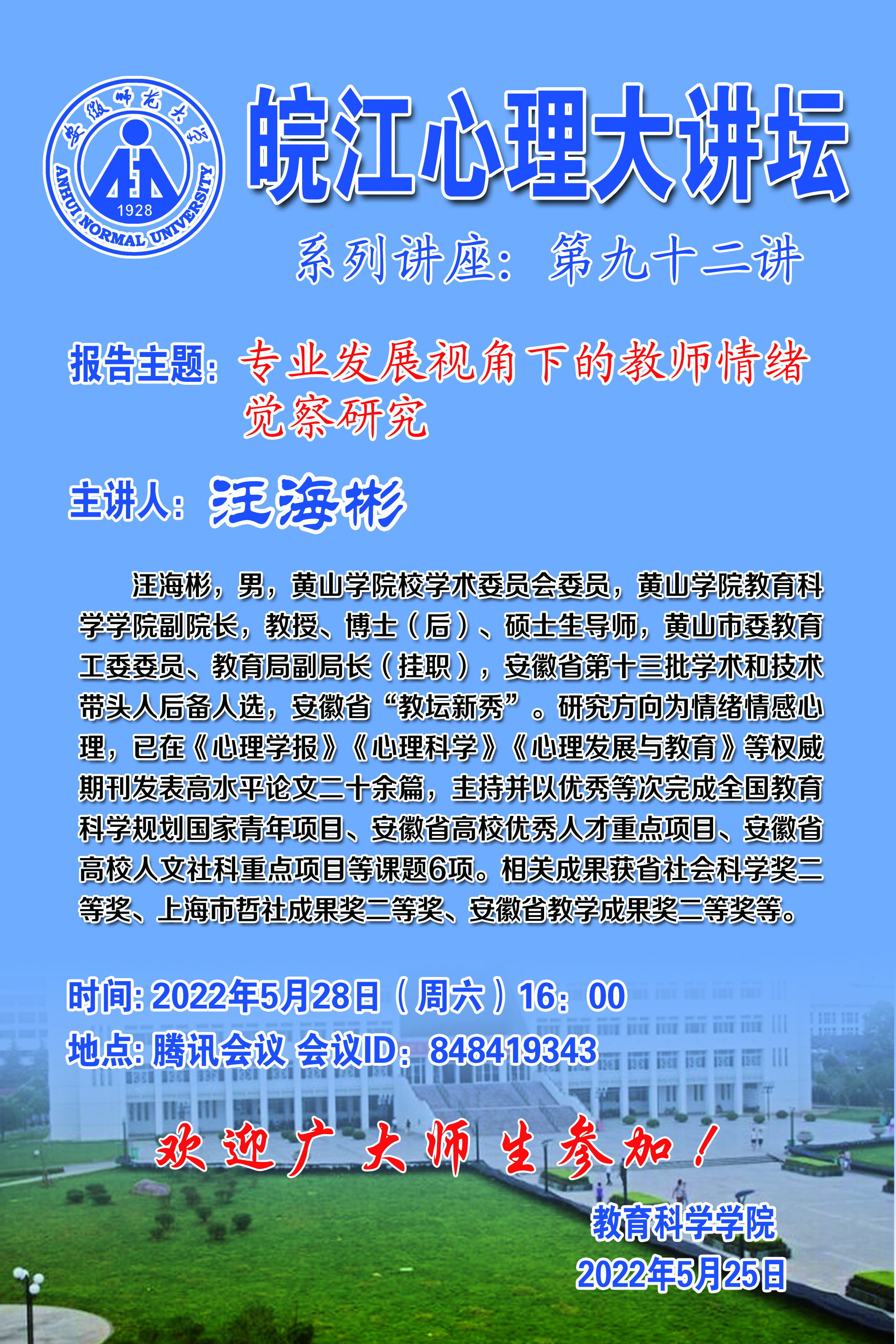 【学术预告】汪海彬:专业发展视角下的教师情绪觉察研究