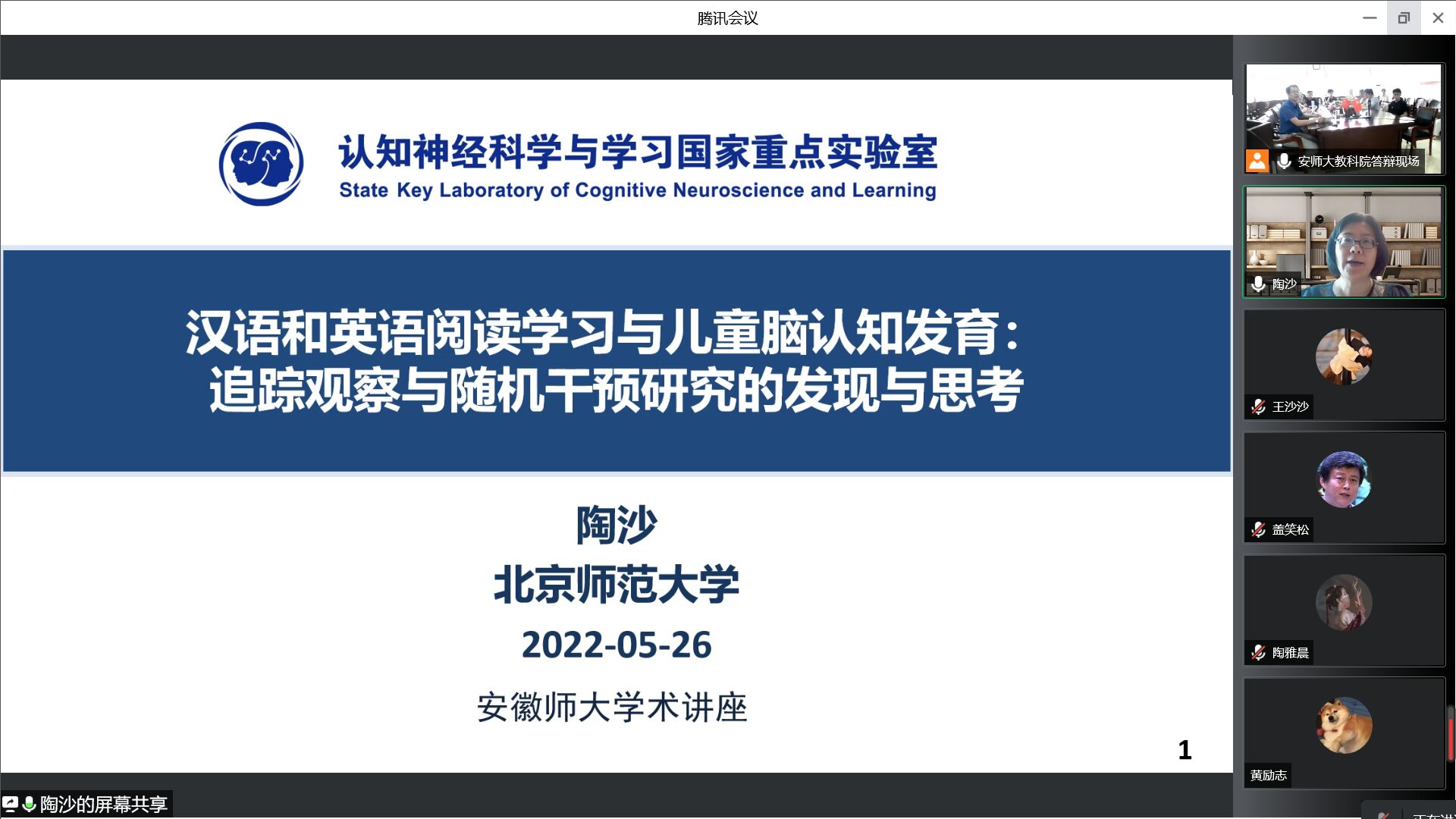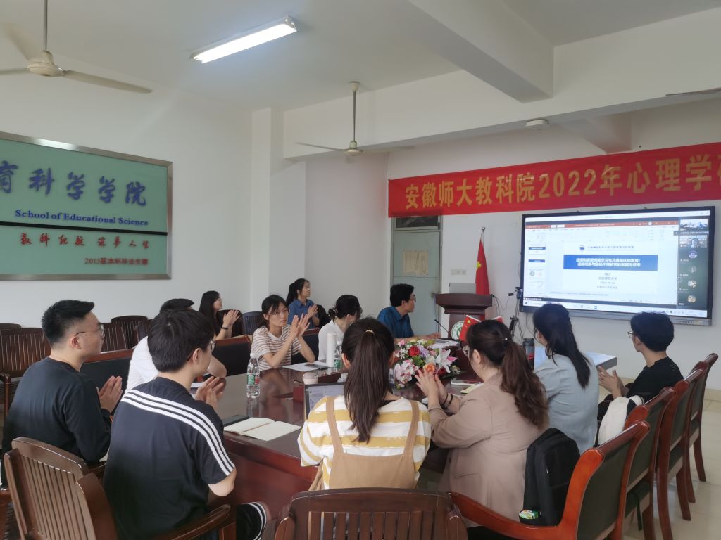 5月26日上午,北京师范大学认知神经科学与学习国家重点实验室教授、博士生导师陶沙教授应邀做客公司皖江心理大讲坛第九十讲,作“汉语和英语阅读学习与儿童脑认知发育:追踪观察与随机干预研究的发现与思考”的主题讲座。本次讲座以线上线下相结合的方式,在教科院308会议室和腾讯会议同时进行,由公司桑青松教授主持,宣宾,韩建涛、丁园园、王礼军等心理学老师,全体心理学、心理健康教育学专业硕士研究生参加此次讲座,聆听学习。