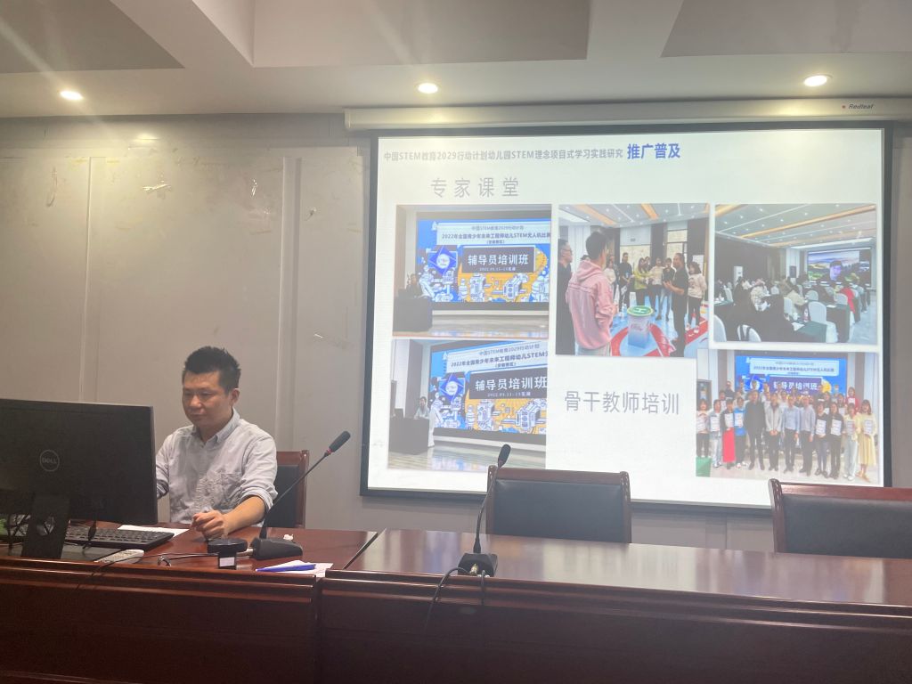 王路曦副教授介绍了“中国STEM教育2029行动计划”的意图以及在2020年申报时的背景,课题主要成员汇报了目前课题的进展程度。同时汇报了课题组根据课题成果要求,承担了由中国教育科学研究院指导组织的“全国未来工程师幼儿STEM无人机竞赛(安徽赛区·芜湖赛点)”的赛事协办任务。