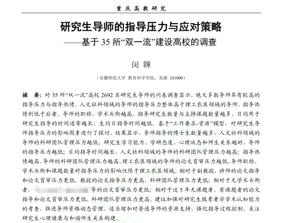 研究生导师的指导压力与应对策略——基于35所“双一流”建设高校的调查