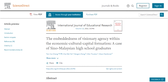 The embeddedness of visionary agency within the economic-cultural-capital formation: A case of Sino-Malaysian high school graduates