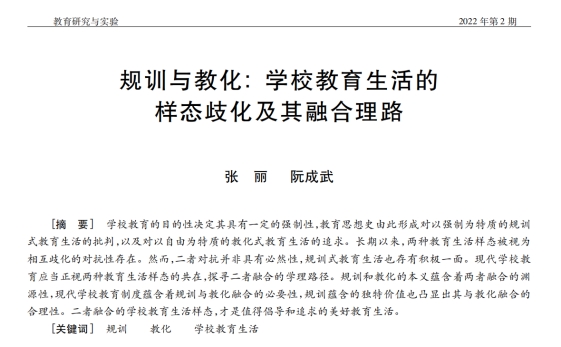 集团教育的目的性决定其具有一定的强制性,教育思想史由此形成对以强制为特质的规训式教育生活的批判,以及对以自由为特质的教化式教育生活的追求。长期以来,两种教育生活样态被视为相互歧化的对抗性存在。然而,二者对抗并非具有必然性,规训式教育生活也存有积极一面。现代公司教育应当正视两种教育生活样态的共在,探寻二者融合的学理路径。规训和教化的本义蕴含着两者融合的渊源性,现代公司教育制度蕴含着规训与教化融合的必要性,规训蕴含的独特价值也凸显出其与教化融合的合理性。二者融合的公司教育生活样态,才是值得倡导和追求的美好教育生活。