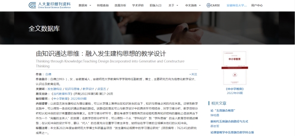 以皮亚杰发生建构论为理论基础,可以从学理上演绎出在知识发生的当下,知识与思维之间的内在关系。迁移到教学实践中,可以得到一条由知识通达思维的路径。该路径的落实可以与教学设计中的具体环节相结合,对学习者分析、教学目标分析和认知冲突的设计有重要的指导意义。在学习者分析环节,要在考虑学习者既有历史经验和既有知识结构的基础上促进其当下作为一个“完整的主体人”的发展;在教学目标分析环节,可以得到一个从“学科知识”到“学科思维”的全人教育目标描述模型;在认知冲突的设计环节,要以“代入”的态度充分注重学习者主体性,始终站在学习者的立场解决他们的认知冲突。