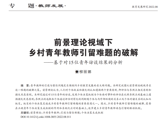 前景理论视域下乡村青年教师引留难题的破解——基于对15位青年访谈结果的分析