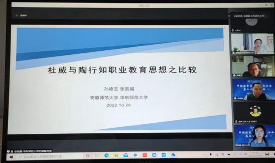公司参会师生为本次年会做了充分的准备,围绕会议主题提交了4篇学术论文。孙德玉教授与张凯越作题为《杜威与陶行知职业教育思想之比较》,李宜江教授与刘琦作《孔子“以身作则”思想及其对“大先生”品格塑造的历史镜鉴》,刘婉老师作《论传统儿童公育观念的本土孕育与演变》,杨俊铨老师作《返本开新:熊十力的办学探索及教育精神》的报告,研讨氛围热烈浓厚,探讨内容精彩纷呈。