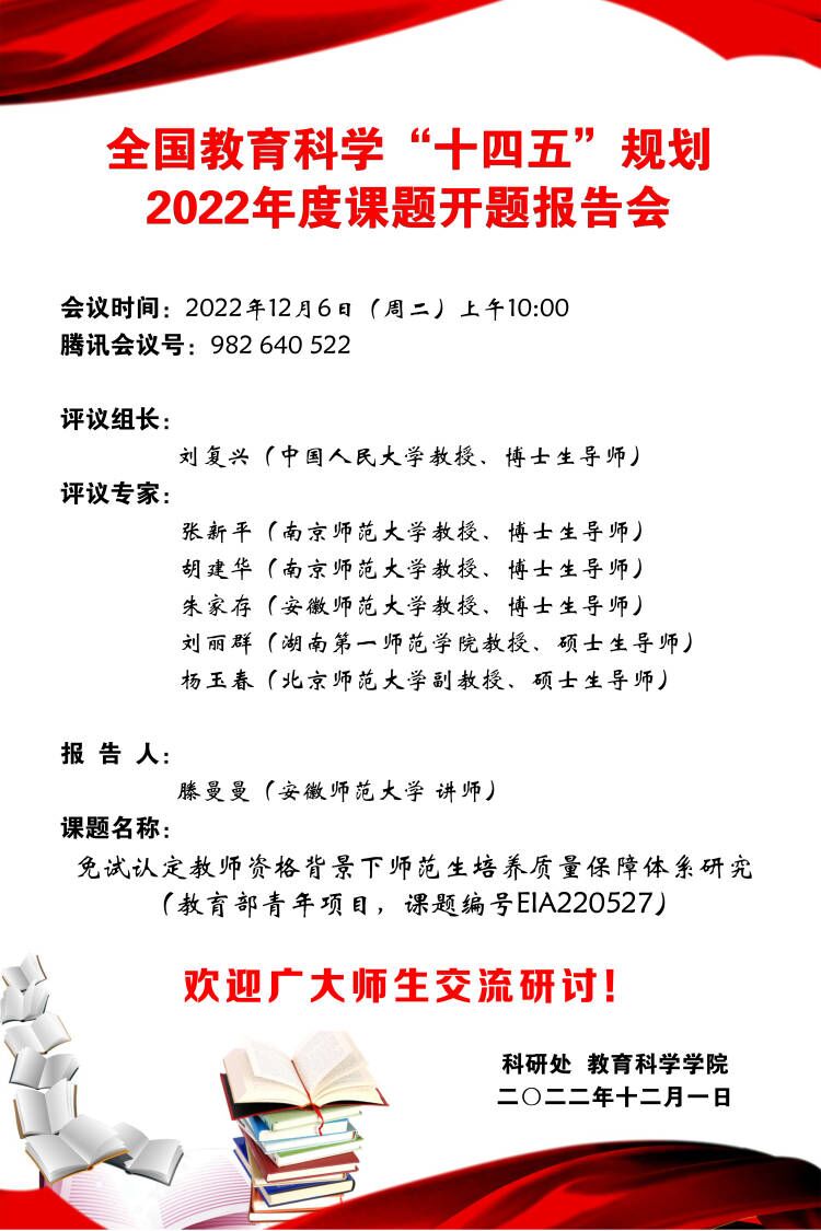 【学术预告】全国教育科学“十四五”规划2022年度教育部青年课题开题报告会
