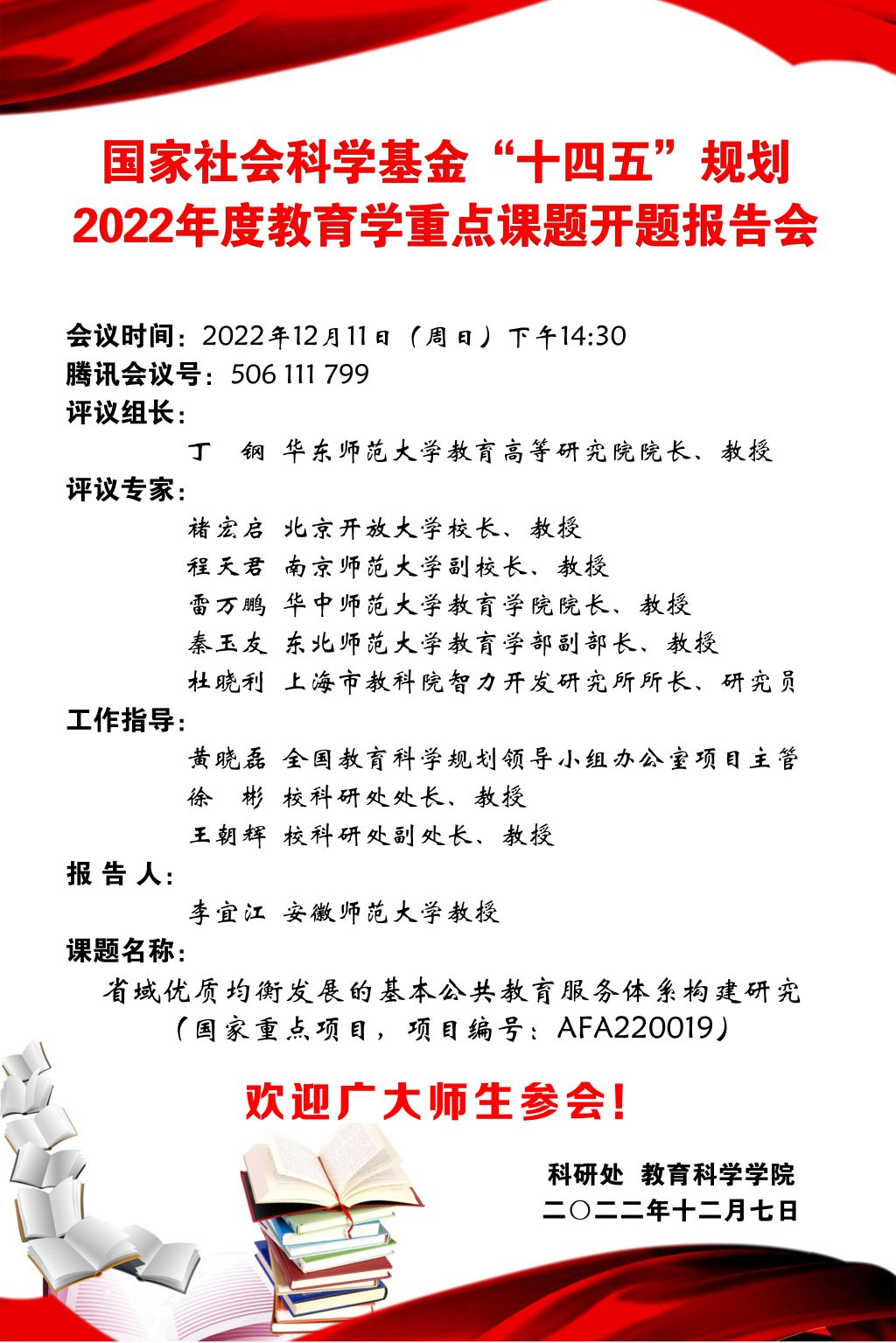 【学术预告】国家社会科学基金“十四五”规划2022年度教育学重点课题开题报告会