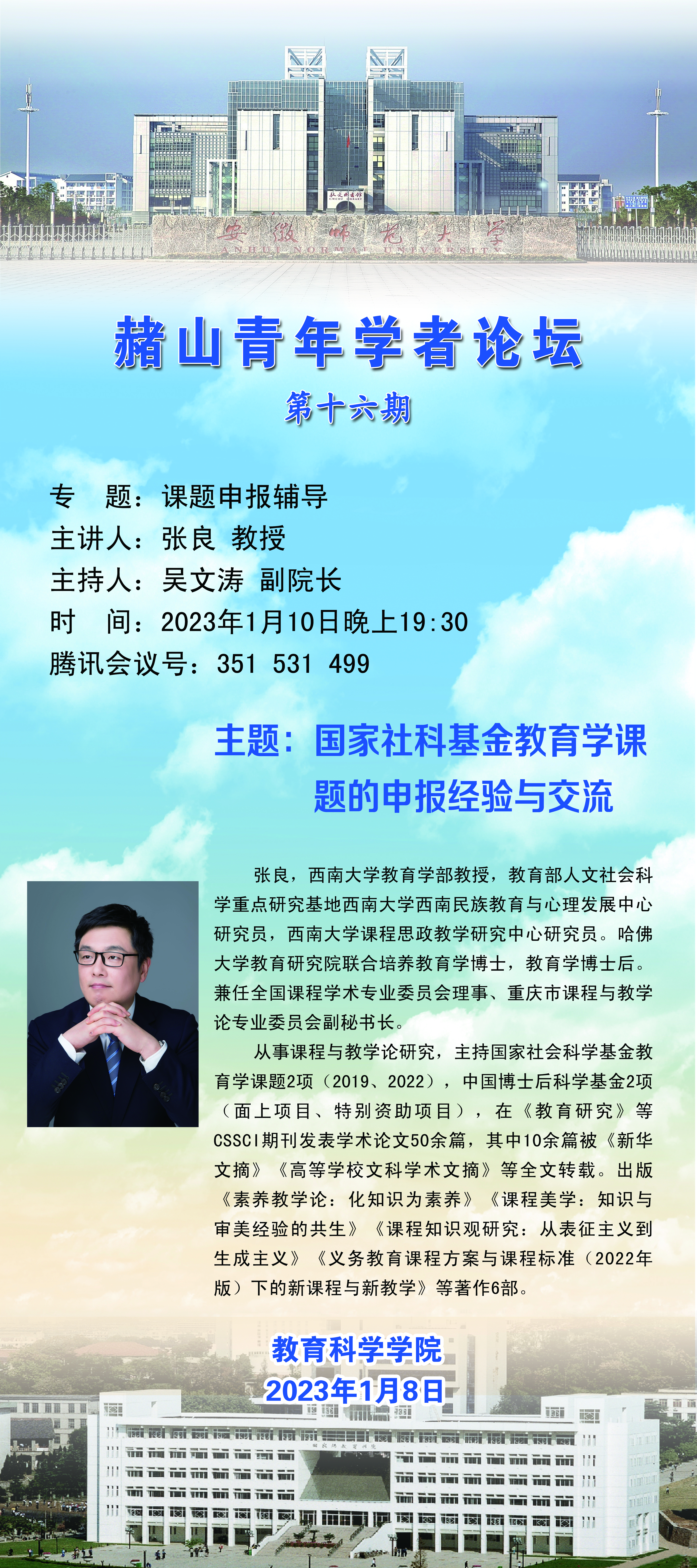 【学术预告】赭山青年学者论坛第16期:国家社科基金教育学课题的申报经验与交流