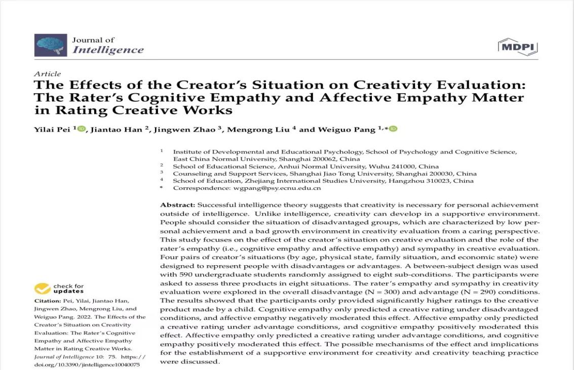 《Journal of Intelligence》2022年