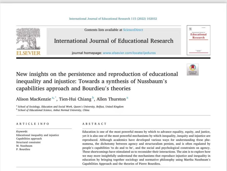 Alison MacKenzie a , Tien-Hui Chiang b , Allen Thurston a:New insights on the persistence and reproduction of educational inequality and injustice: