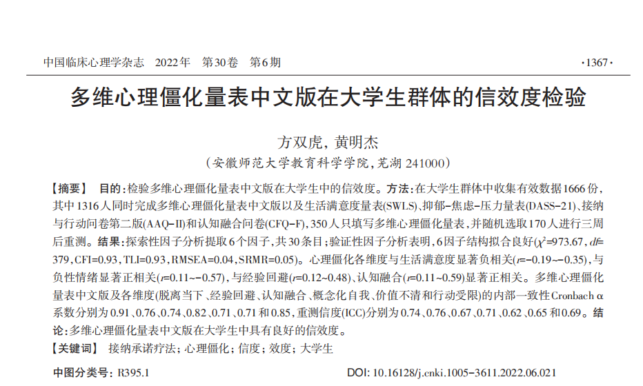 《中国临床心理学杂志》2022年第6期