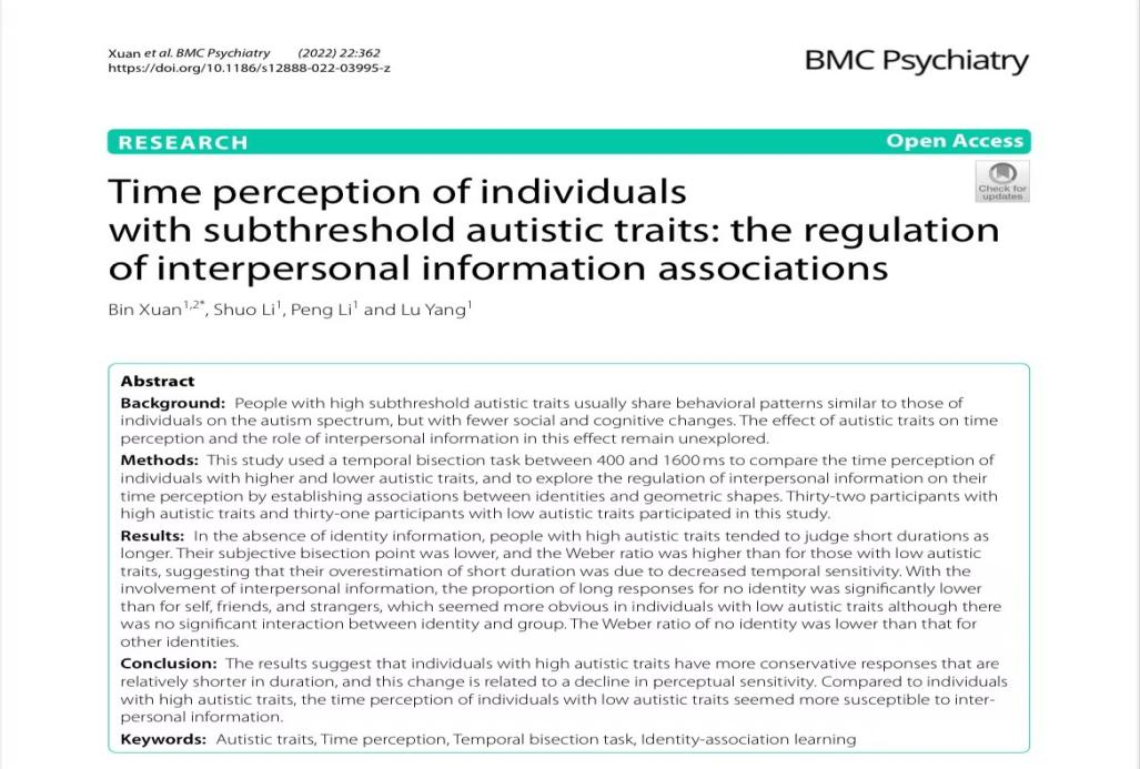 Time perception of individuals with subthreshold autistic traits: the regulation of interpersonal information associations