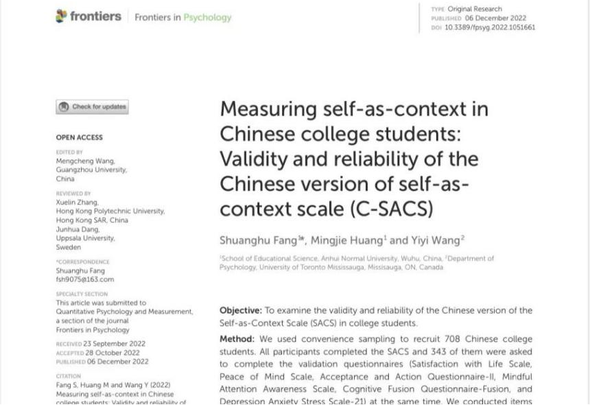 Shuanghu Fang , Mingjie Huang and Yiyi Wang: Measuring self-as-context in Chinese college students: Validity and reliability of the Chinese version of self-ascontext scale (C-SACS)
