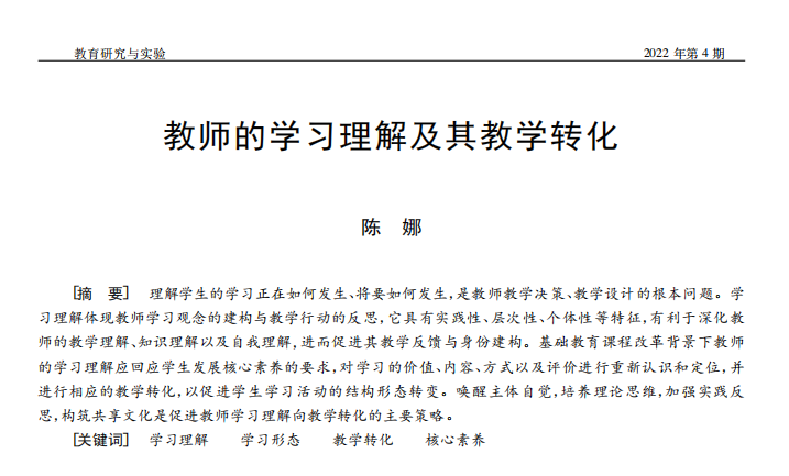陈娜:教师的学习理解及其教学转化