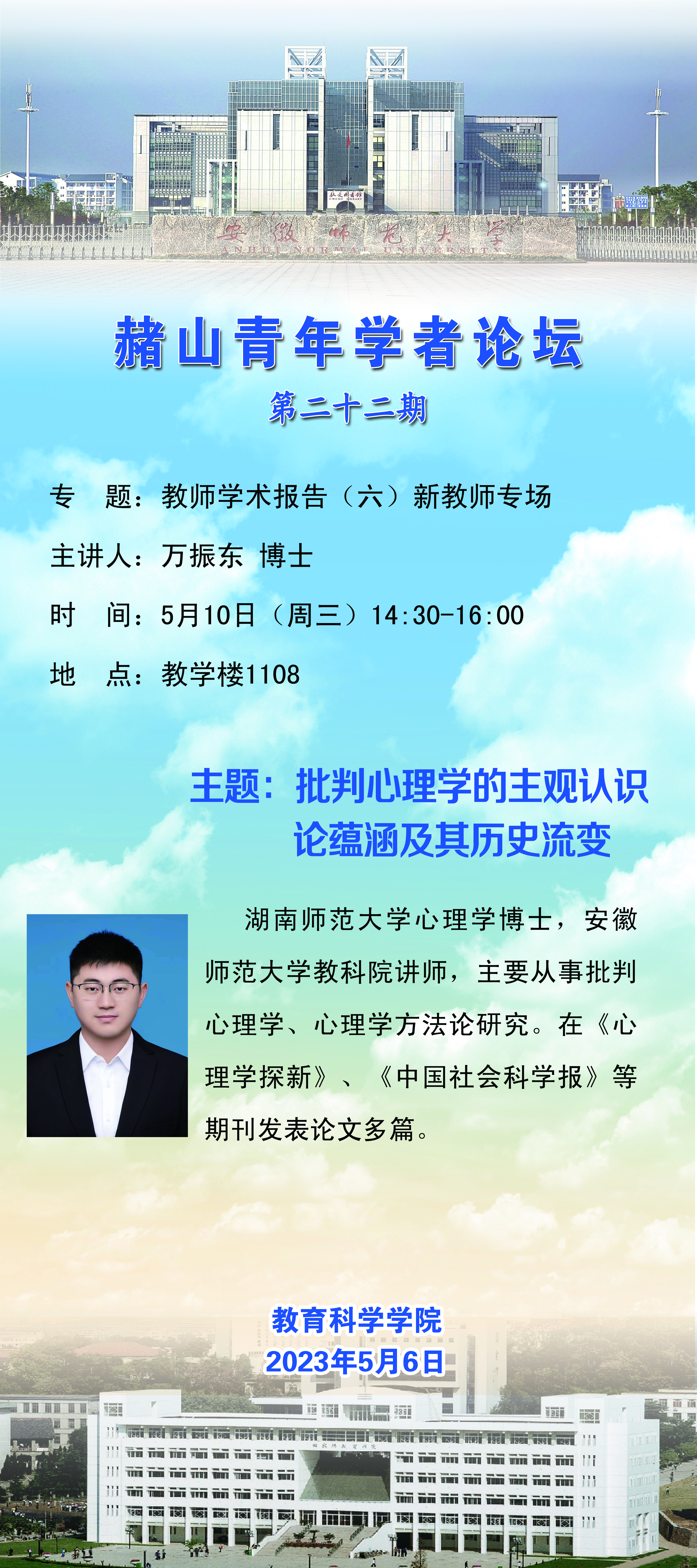 【学术预告】赭山青年学者论坛第二十二期:批判心理学的主观认识论蕴涵及其历史流变