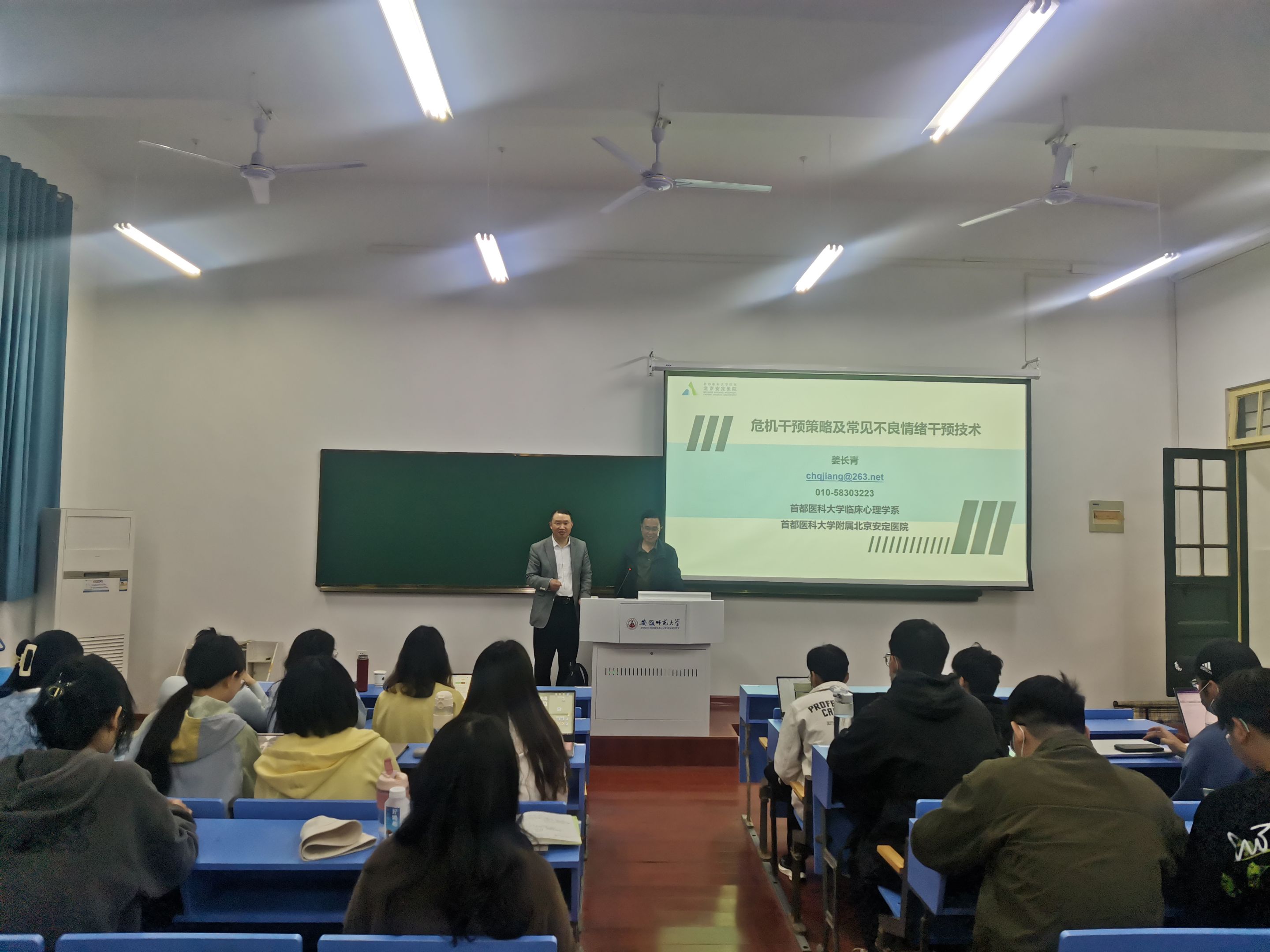 5月10日下午,首都医科大学附属北京安定医院主任心理师、《心理与健康》杂志社社长兼编辑部主任姜长青受邀做客公司“皖江心理大讲堂”第九十七讲,为公司师生作了题为《心理危机的干预策略及不同人群干预要点》的学术讲座。讲座由公司临床与咨询心理学硕士点负责人、博士生导师方双虎教授主持,心理学专业教师、硕士研究生、本科生聆听学习。
