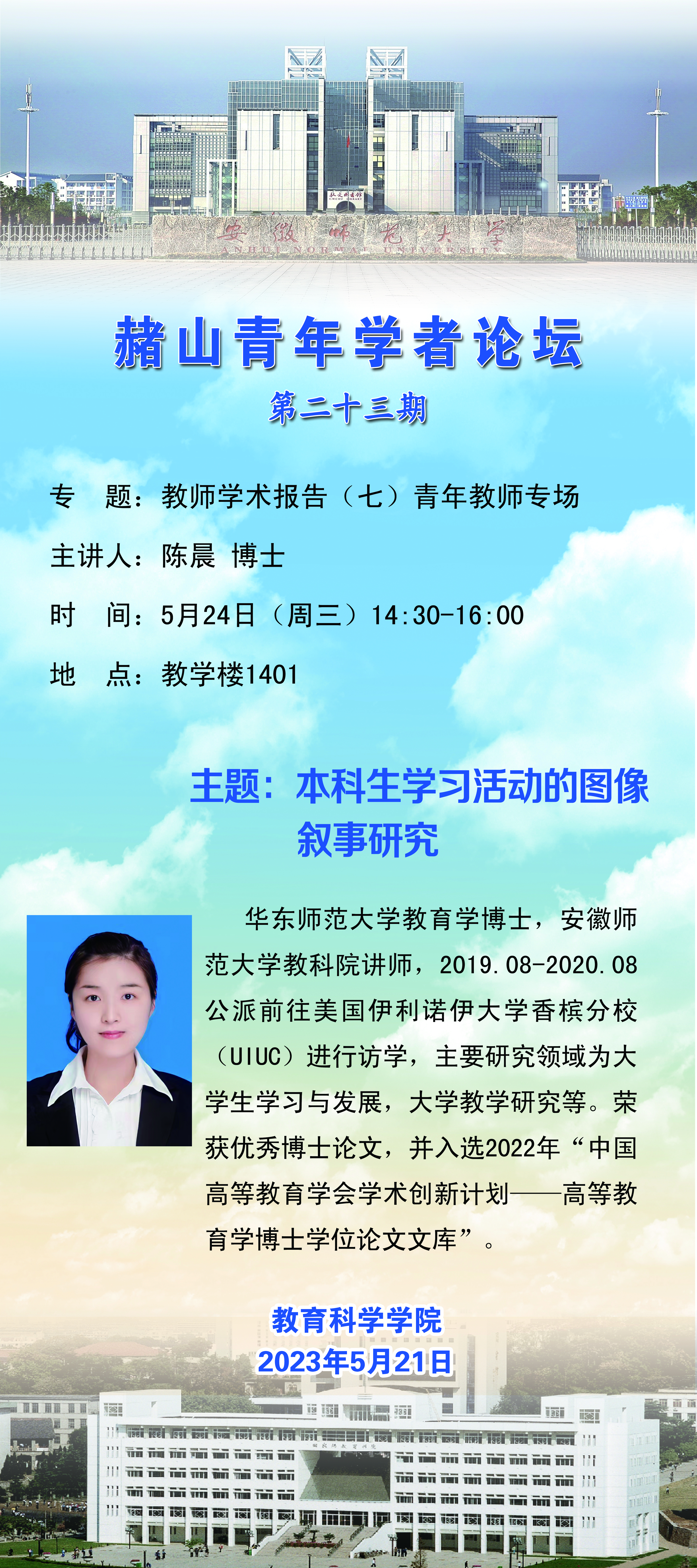 【学术预告】赭山青年学者论坛第二十三期:本科生学习活动的图像叙事研究