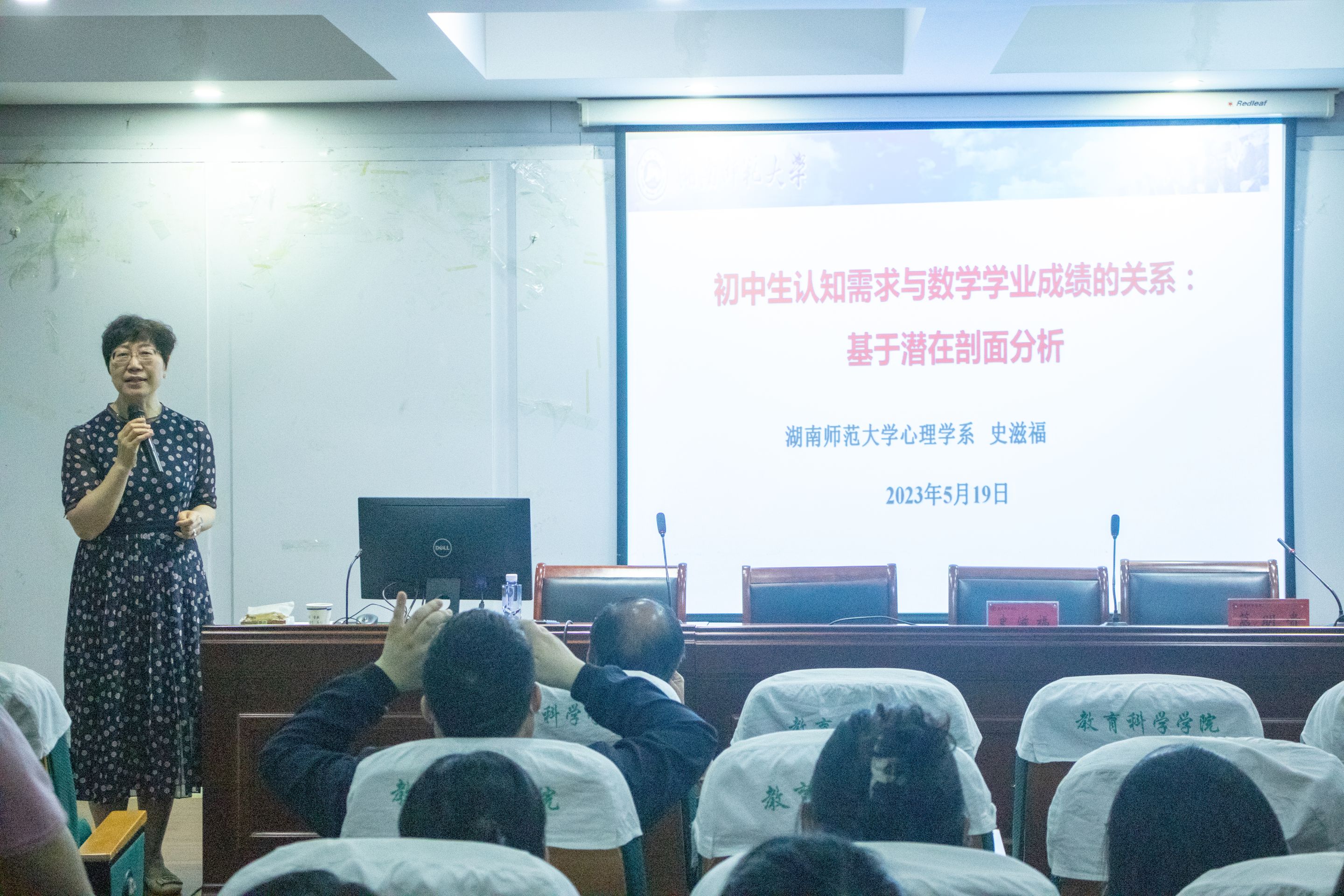 讲座伊始,史滋福教授首先展示了新世纪20年内国内心理学统计方法研究回顾,介绍了心理学研究中10个研究热点,并结合着具体例子着重介绍了潜在类别模型的原理、步骤和程序。随后史滋福教授围绕着论文具体内容,讲述如何采用潜在剖面分析探讨初中生的认知需求类型及其数学学业成绩的关系。最后史滋福教授提醒同学们统计方法应当是为研究而服务的,研究需要有理论支撑,建议同学们将思路打开,心理学值得大家进行探索。