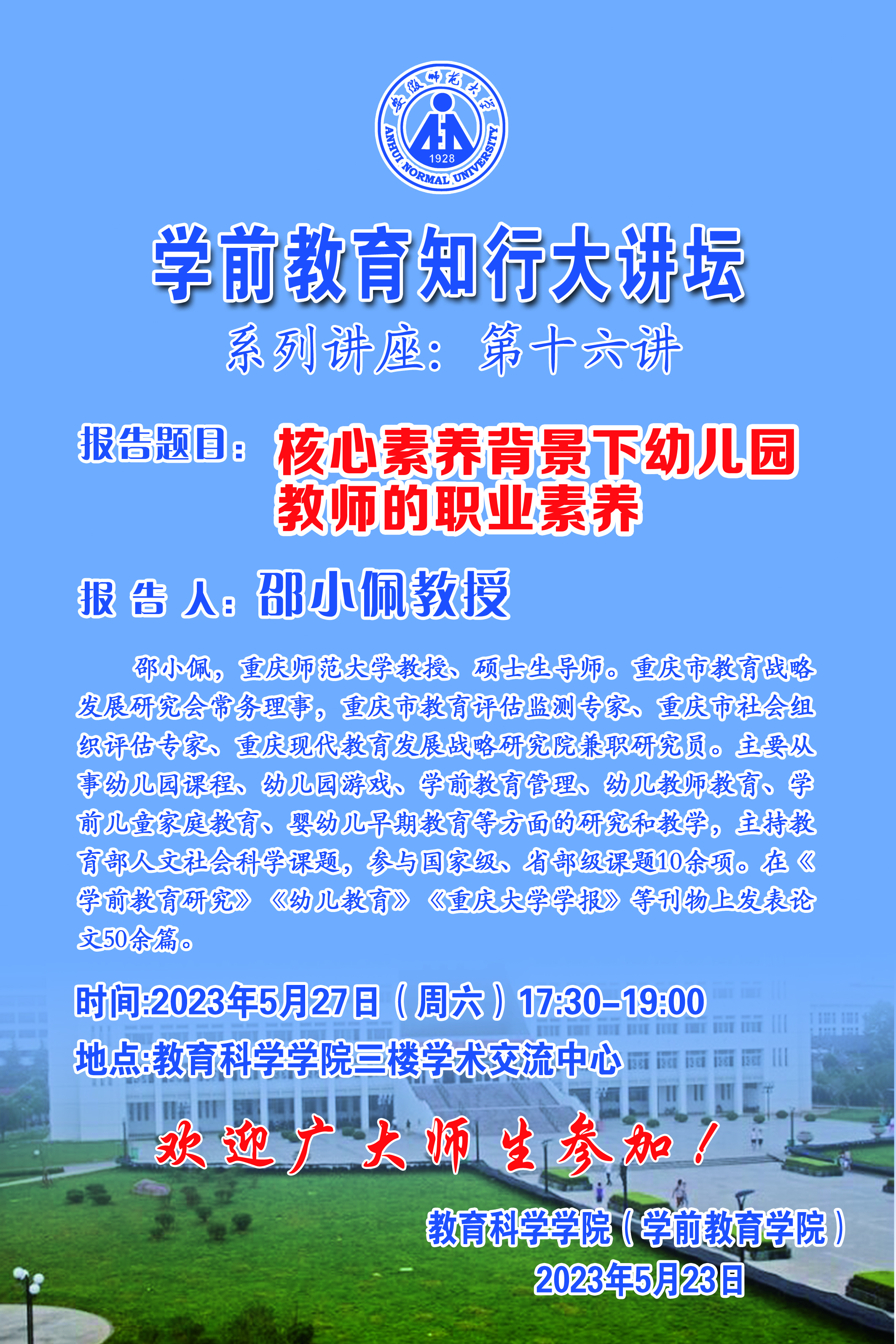 【学前教育知行大讲坛第十六讲】重庆师范大学邵小佩教授:核心素养背景下幼儿园教师的职业修养