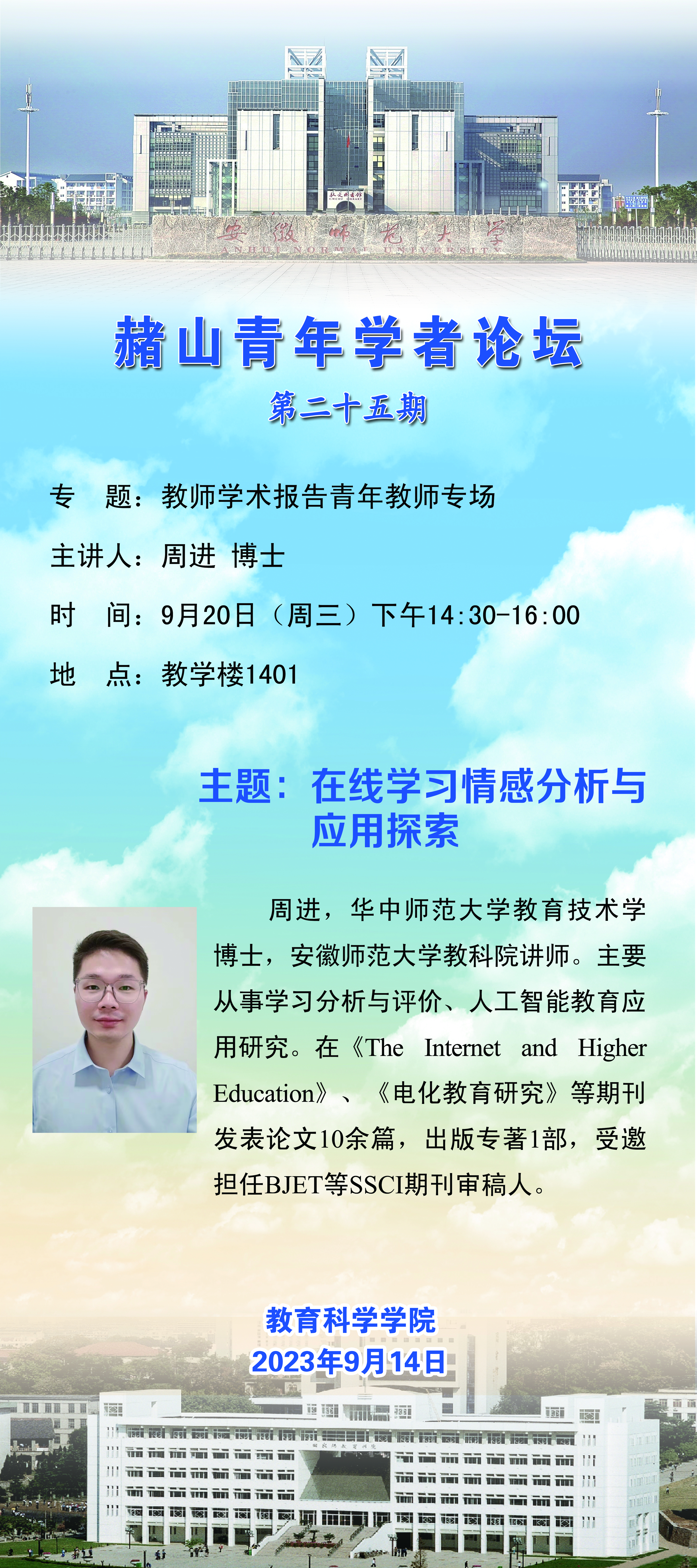 【学术预告】赭山青年学者论坛第二十五期:在线学习情感分析与应用探索(周进博士)