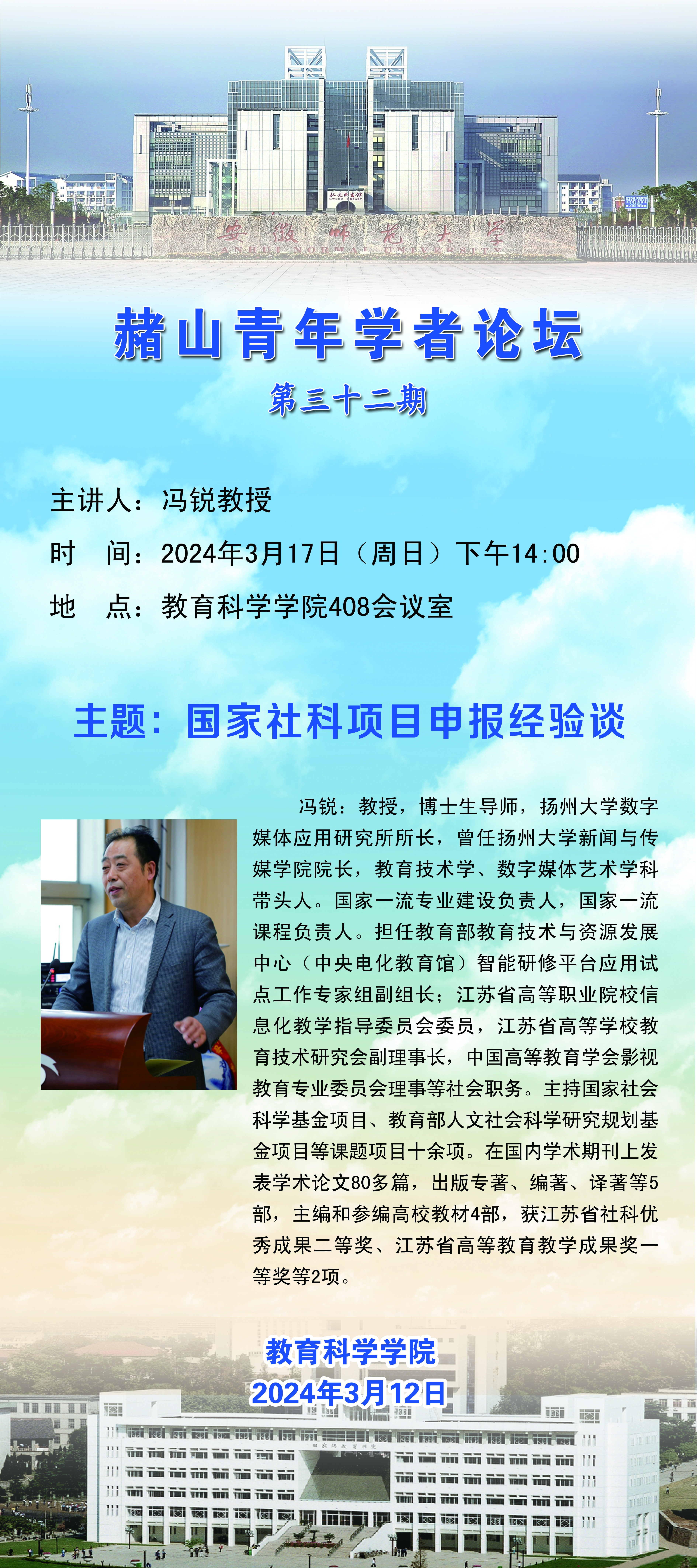 【学术预告】赭山青年学者论坛(第三十二期)——冯锐:国家社科项目申报经验谈