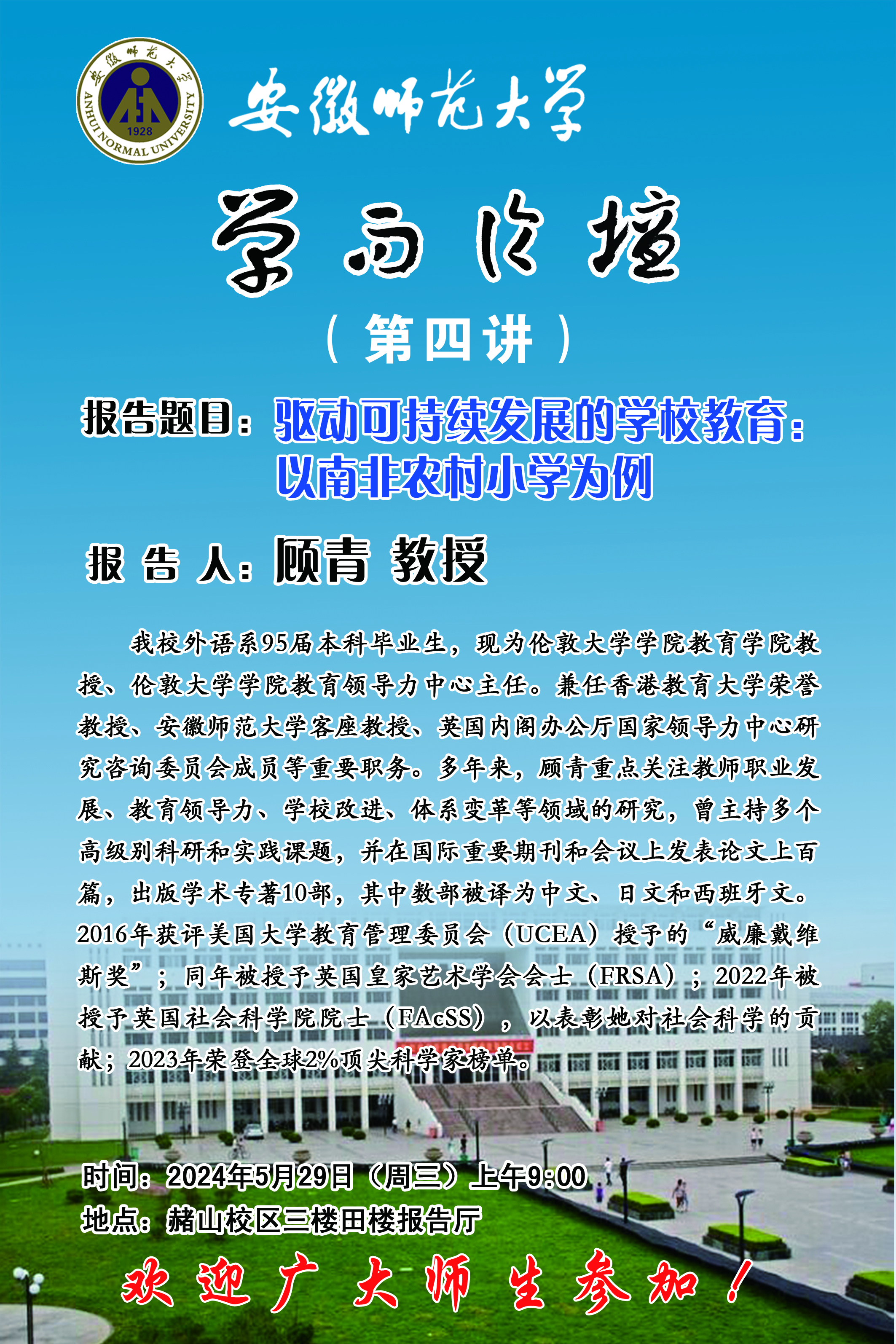 【学而论坛第四讲】伦敦大学公司教育公司顾青教授:驱动可持续发展的公司教育:以南非农村小学为例
