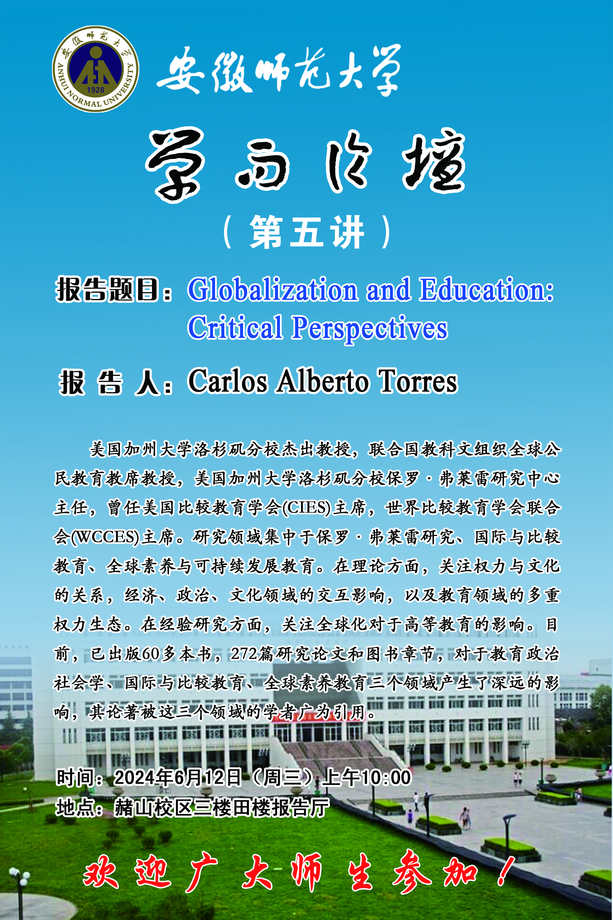 【学而论坛第五讲】美国加州大学洛杉矶分校杰出教授Carlos Alberto Torres:Globalization and Education: Critical Perspectives