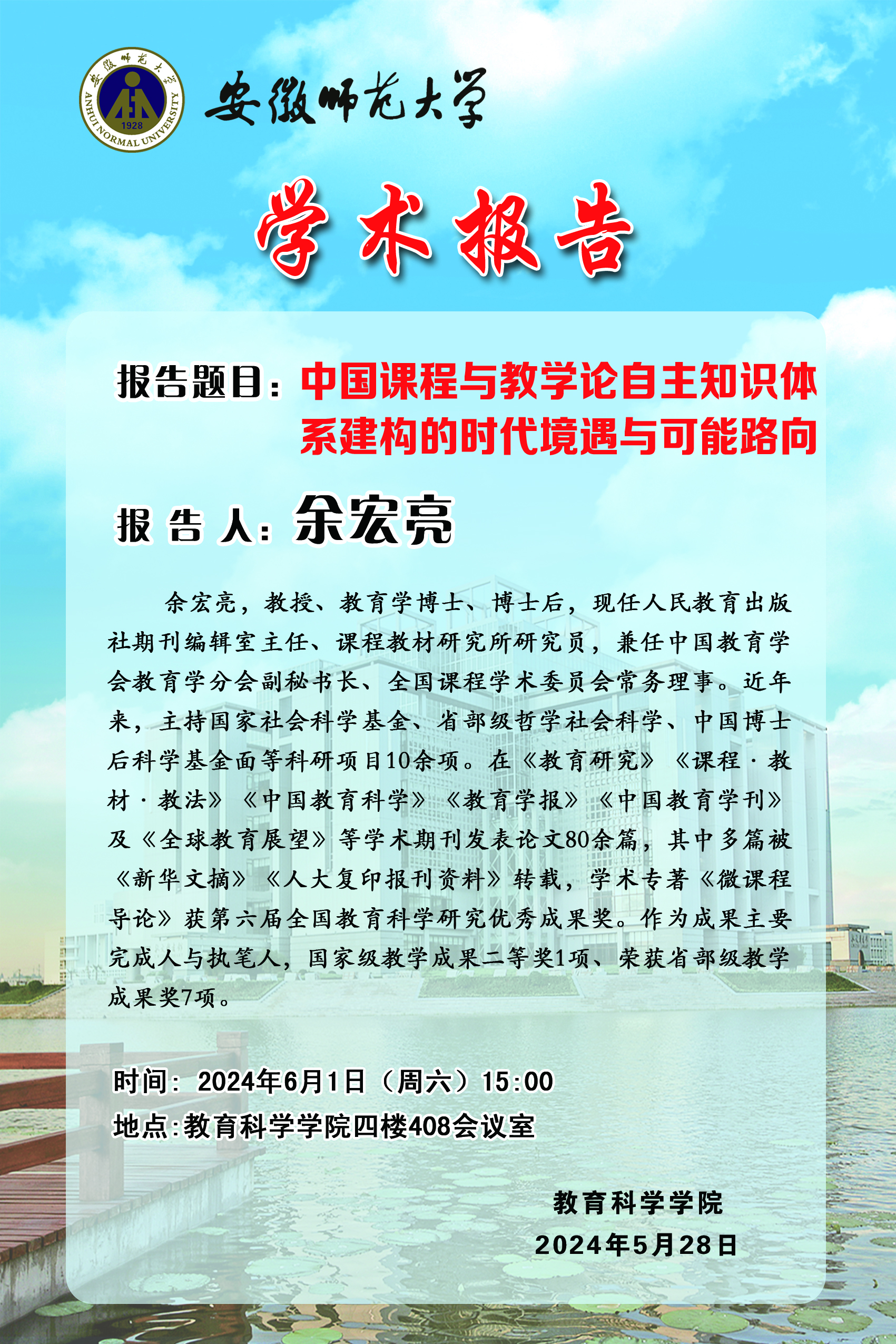 【学术预告】余宏亮:中国课程与教学论自主知识体系建构的时代境遇与可能路向